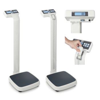 Das Anzeigegerät ist auf einem Stativ montiert und bietet ein kontrastreiches LCD-Display mit großen Ziffern. Auf dem großen Ziffernblock können Sie z.B. die Größe des Patienten eingeben, um sich den BMI-Wert ausgeben zu lassen. Eine Halterung für die Wandmontage ist im Lieferumfang enthalten.