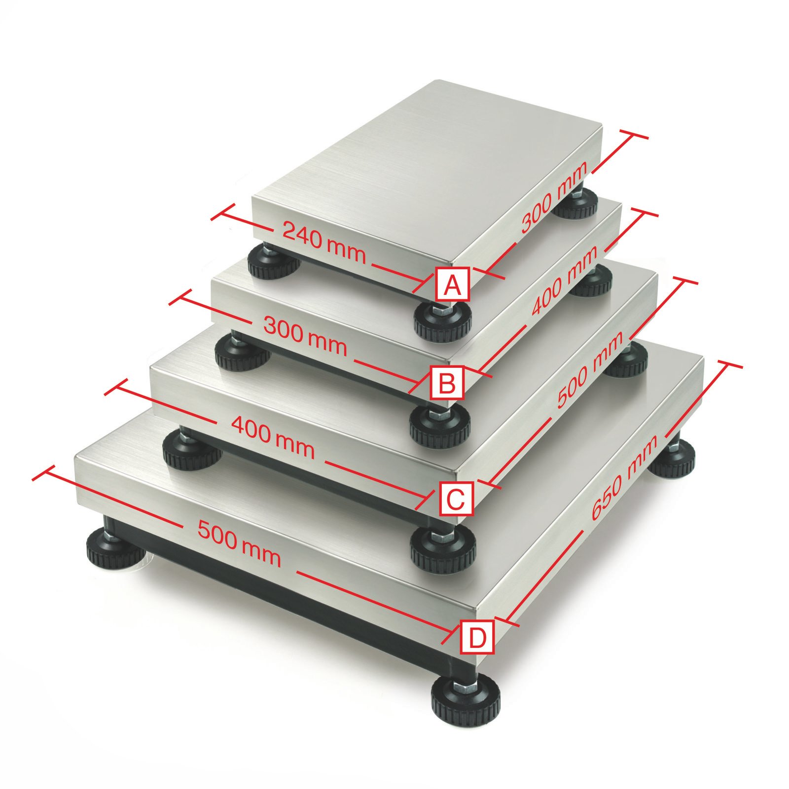 - Plattformgröße: 230 x 230 mm²300 x 240 mm²400 x 300 mm²500 x 400 mm²650 x 500 mm²