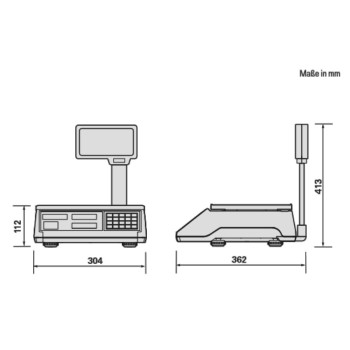 - Beidseitige hinterleuchtete LCD-Anzeigen für Gewicht, Preis und Betrag (abschaltbar)